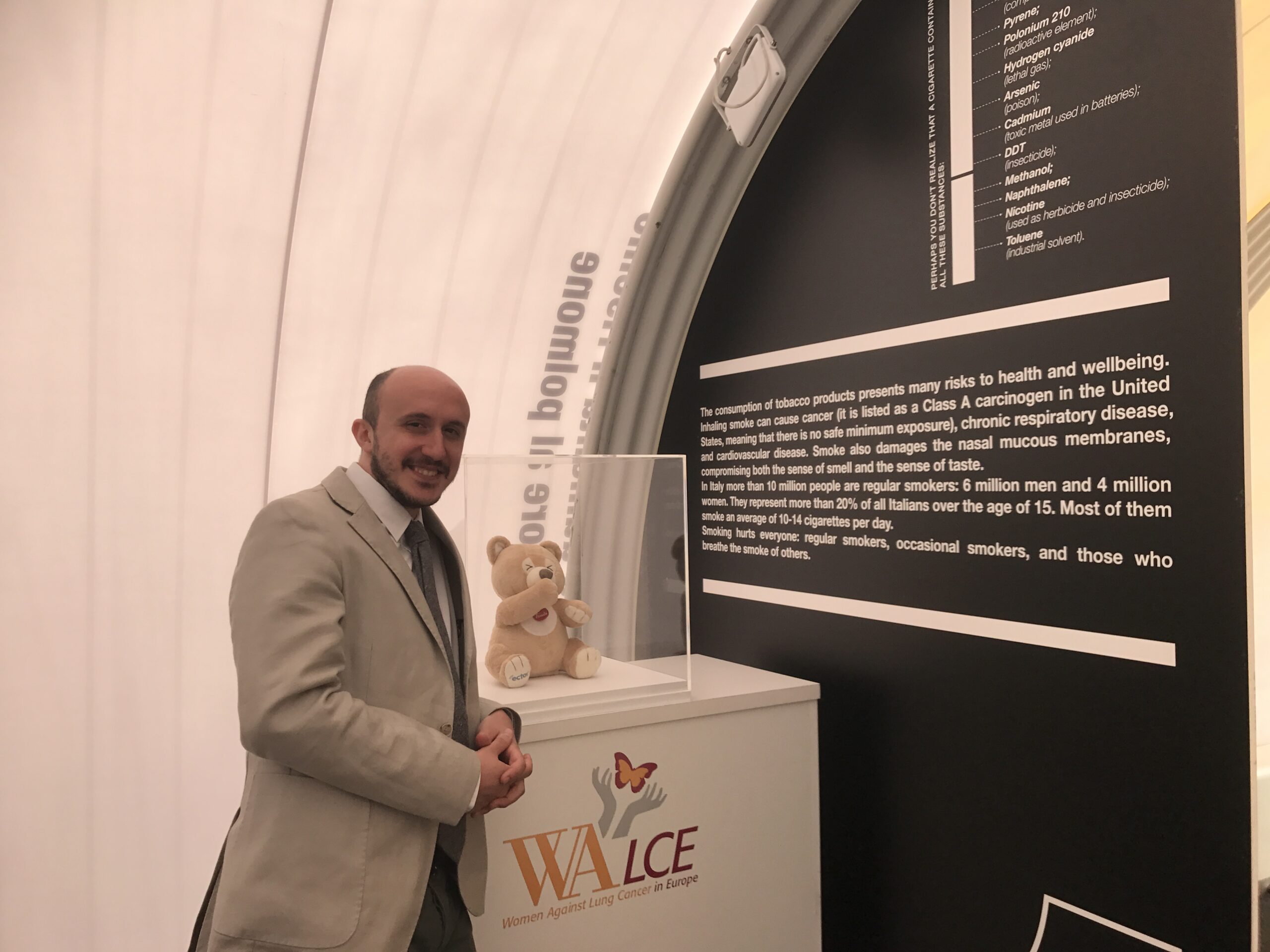 In concomitanza con l’esposizione del Tunnel, è inoltre previsto un workshop all’interno del Parlamento europeo della durata di una mezza giornata il 31 Maggio, ospitato dal MEP italiano, On. Alberto CIRIO, e incentrato sul tema della ricezione e compliance dell’Art. 14 (“Misure tendenti a ridurre la domanda in rapporto alla dipendenza dal tabacco e la disintossicazione dal tabacco”) della Framework Convention on Tobacco Control, per incoraggiare i rappresentanti degli Stati membri a intervenire con iniziative efficaci per promuovere corretti stili di vita, che si discostano dall’abitudine tabagica, tra i cittadini europei.