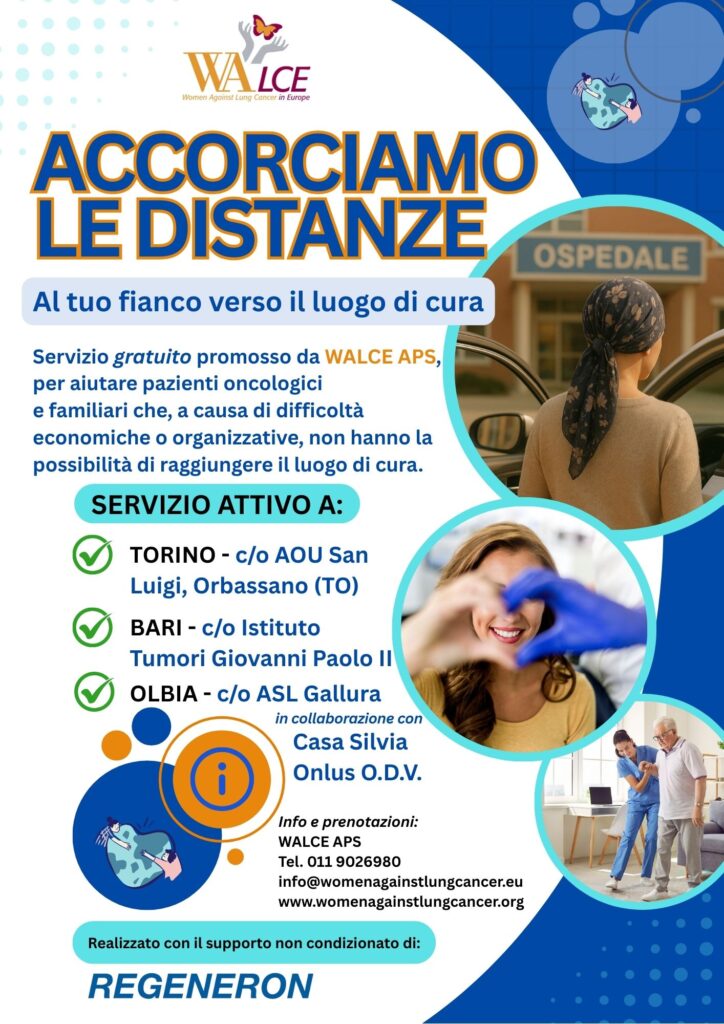 WALCE lavora per il riconoscimento dei diritti dei pazienti con un tumore del polmone e struttura servizi di supporto che consentano loro di ottenere un supporto per far fronte ai costi delle collateralità, ma soprattutto per raggiungere il luogo di cura.
